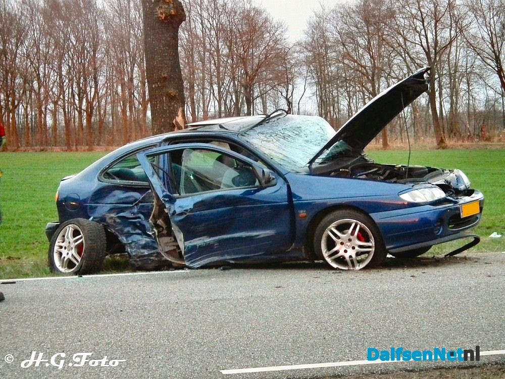 Een bestuurder van een personenauto is op onverklaarbare wijze de macht over het stuur van zijn voertuig verloren.En heef eerst een boom geschampt en is om zijn as gedraaid om de volgende boom volop ik de zijkant te krijgen.