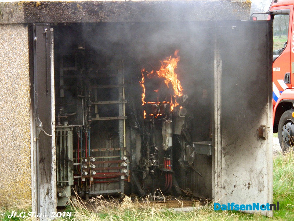 NIEUWLEUSEN – rond 11.45 uur vanmorgen is er brand ontstaan in een transformatorhuisje van Enexis aan Het Westeide, ter hoogte van de Ebbenweg. In eerste instantie zijn brandweer Nieuwleusen en Dalfsen ter plaatse gegaan. Later is er een poeder blusvoertuig uit Zwolle gealarmeerd want water en hoge spanning gaat niet echt samen.Het heeft echter geruime tijd geduurd voor Enexis aanwezig kwam met de sleutel en ondertussen rookte het huisje nog steeds door alle kieren. Toen de brandweer de deuren opende kwamen direct de vlammen voor de dag. Twee brandweerlieden met poederblusser hadden het vuur echter snel onder controle zo dat het grote geschut uit Zwolle niet nodig bleek. De hele buurt zit op dit moment zonder stroom, waar onder ook enkele agrarische bedrijven. Een melkveehouder die ik daar sprak had direct al een aggregaat geregeld om in elk geval vanavond wel te kunnen melken. Hoe lang het herstel gaat duren is nu nog niet bekend.