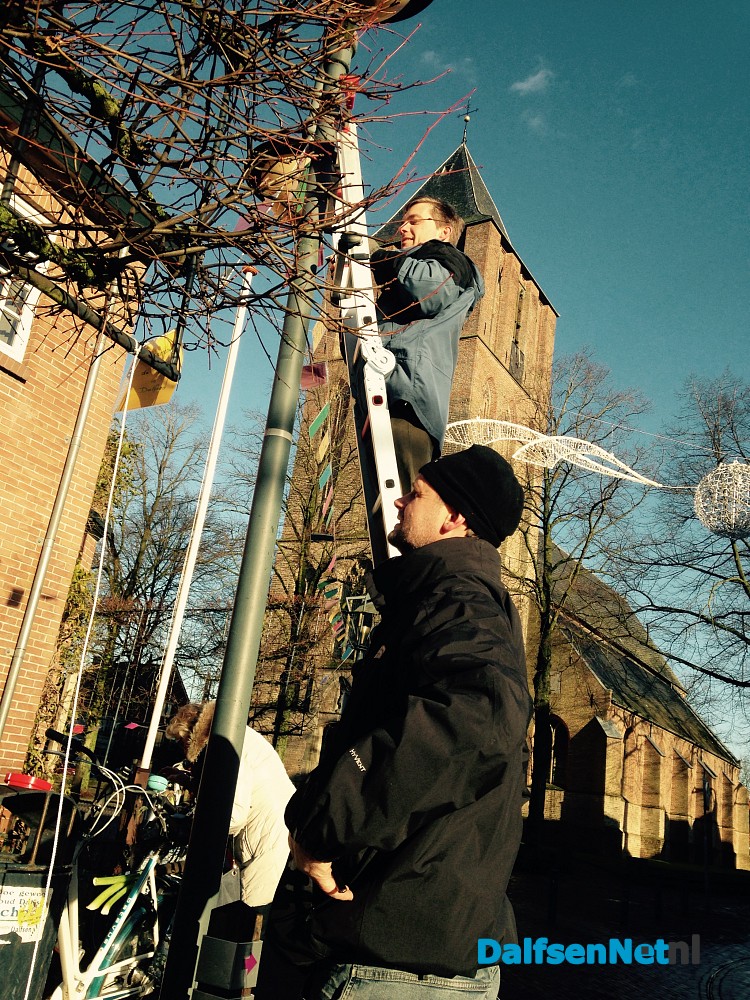 DALFSEN – Vanmiddag zijn de eerste 1000 vlaggen met dankpunten opgehangen in de Prinsenstraat, Kerkplein en Wilhelminastraat in Dalfsen.