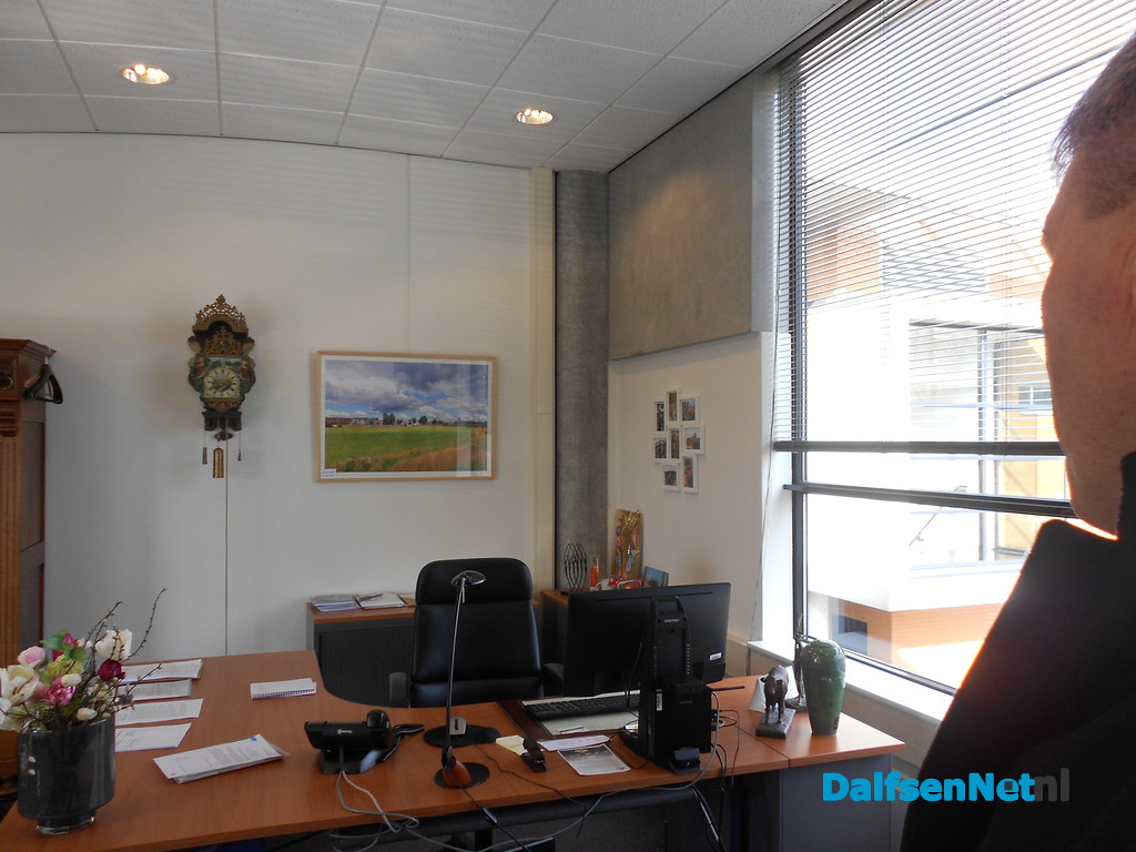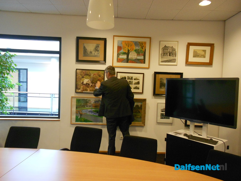 We lopen in het gemeente huis ook langs een wand met allemaal burgemeesters die hier gediend hebben. Rechts onder hangt een lege lijst, daar kom ik, zegt Klaas. En rechts boven zien we een foto van Jan Eggens, ook een oud wethouder uit Dalfsen die hier ook burgemeester is geweest. Toevallig is er vandaag zelfs een kleinzoon van Jan Eggens bij het gezelschap. Leuk voor hem een foto van zijn opa hier tegen te komen.