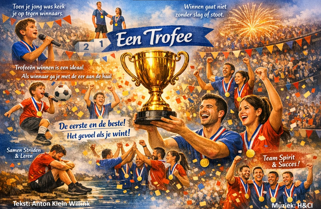DALFSEN – Deze maand zijn er weer veel kampioenen en winnaars. Gisteravond kreeg ik de geest en schreef het volgende liedje hierover: Een Trofee!