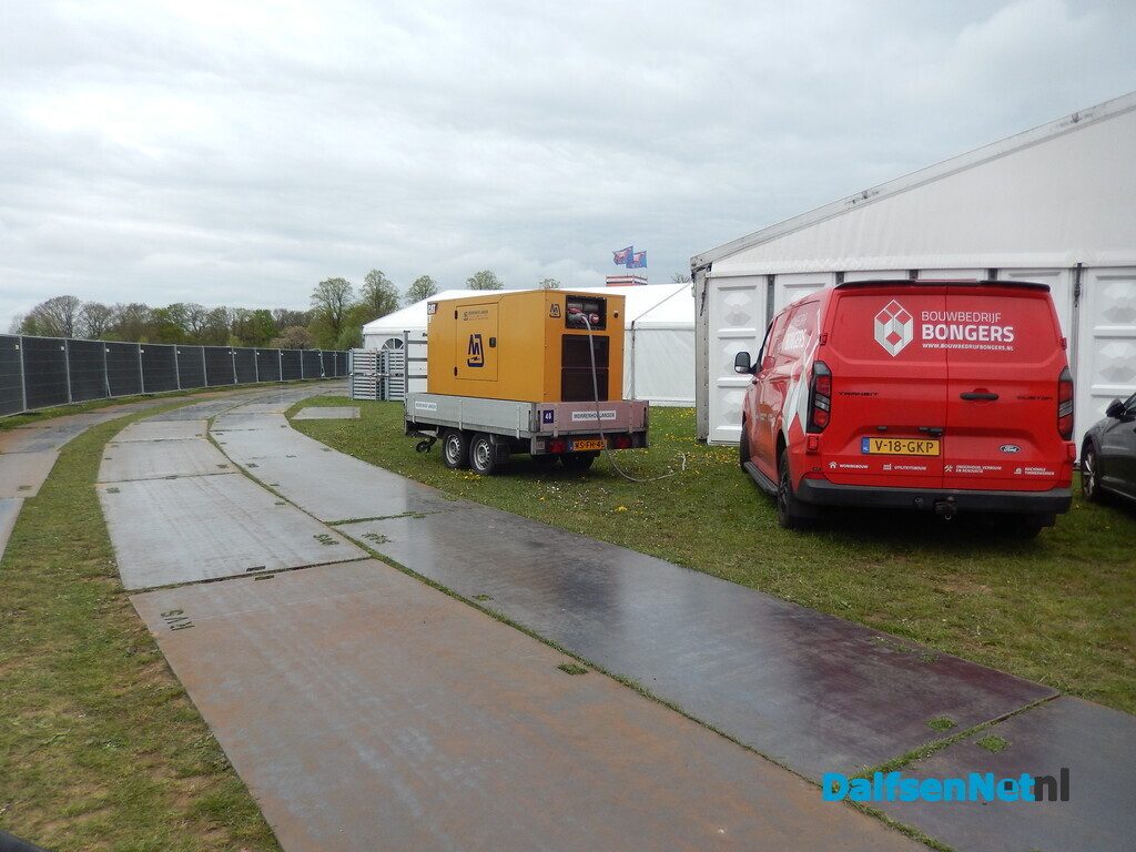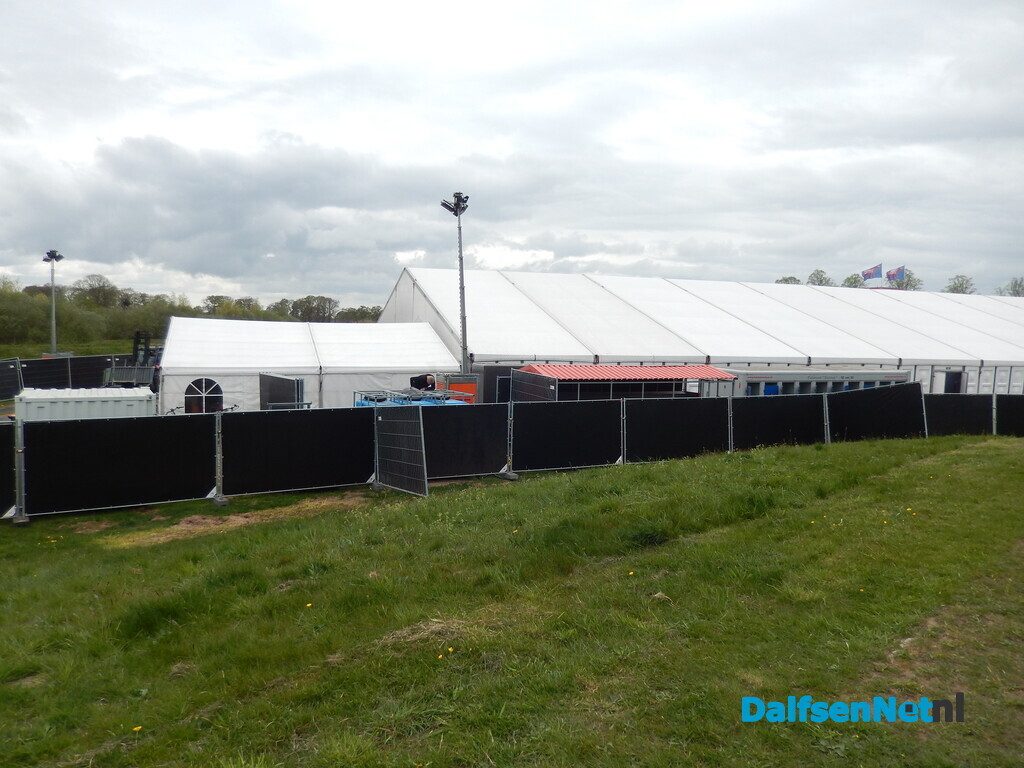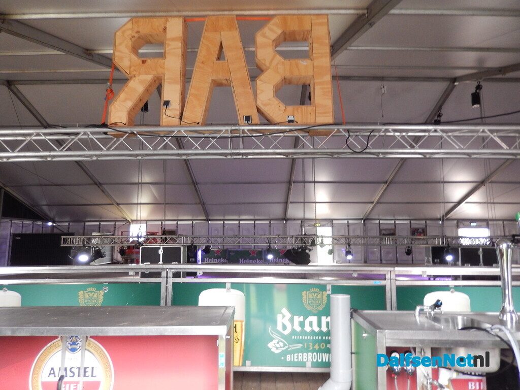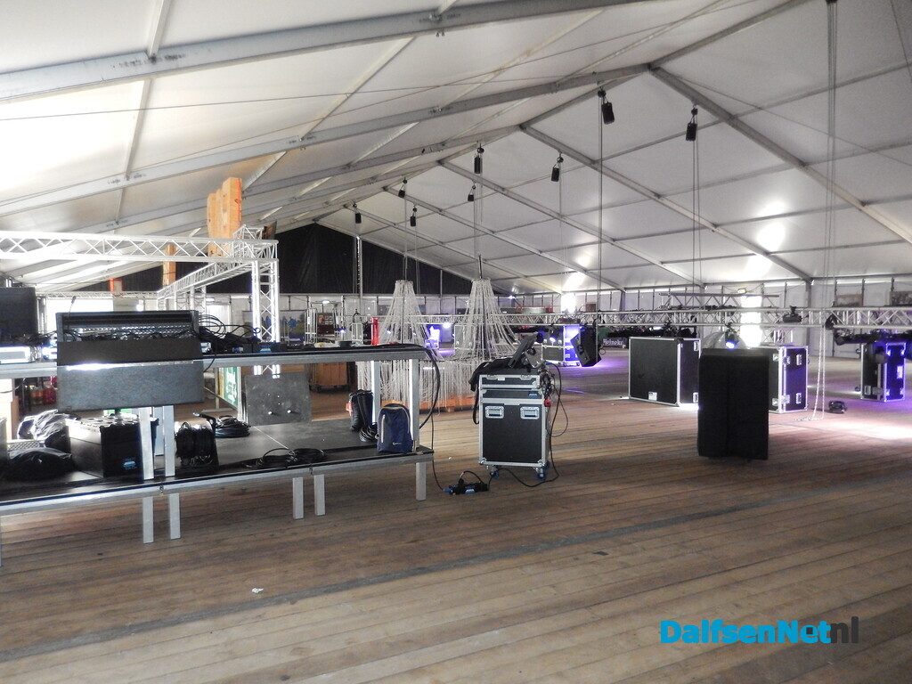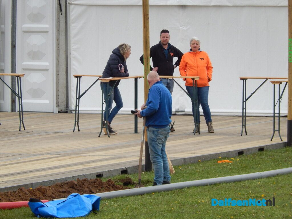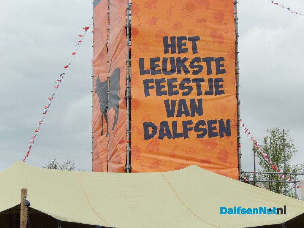 DALFSEN – Met man en macht wordt gewerkt aan de laatste voorbereidingen voor het jaarlijkse Oranjefeest. Met name in en rond de feesttent is de bedrijvigheid groot. De tent is volledig afgezet met schermen, zodat bezoekers uitsluitend via de hoofdingang naar binnen kunnen en er geen ongewenste doorgang rondom ontstaat.