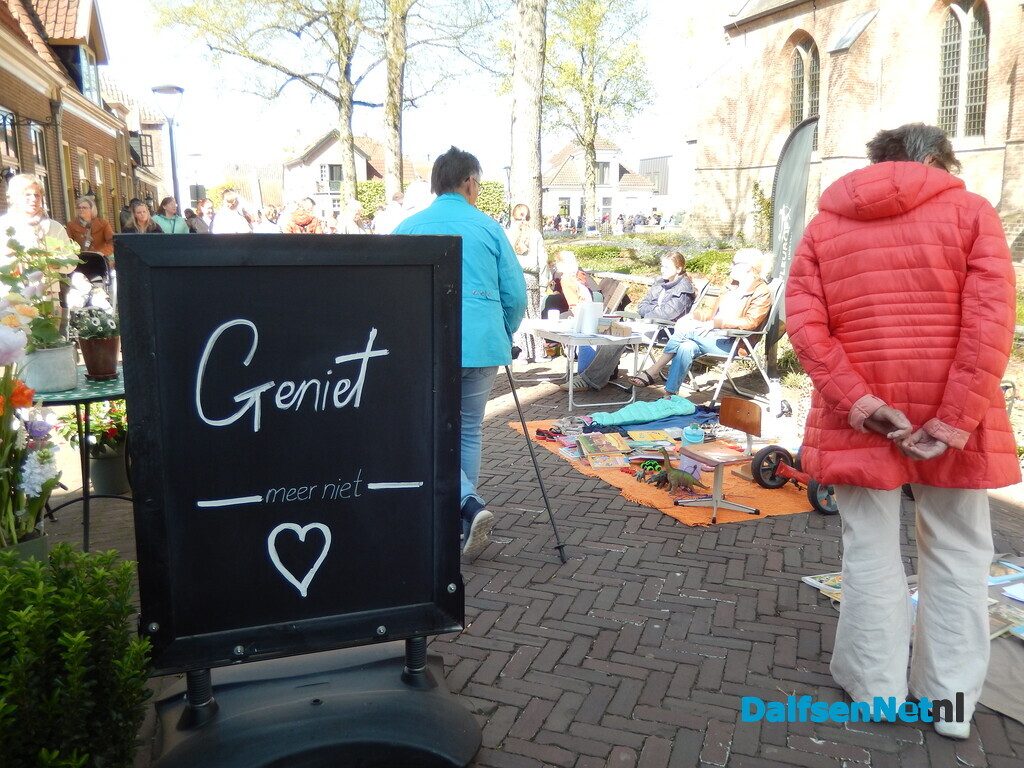 Verder waren er nog een paar leuke reclameborden te zien – heel simpel, maar daardoor juist opvallend en leuk bedacht. Ook nog een foto gemaakt in de Prinsenstraat en bij de brug. Ondertussen was een medewerkster van de Oranjevereniging druk bezig met vlaggen ophangen, wat natuurlijk hoort bij de voorbereidingen voor weer een drukke en gezellige dag.